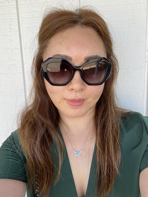 The size is not too large and is the same as the picture. It's very cute and lovely and the topaz color is cool. I bought this product while looking for a necklace to wear in the summer. This necklace goes well with the dress.