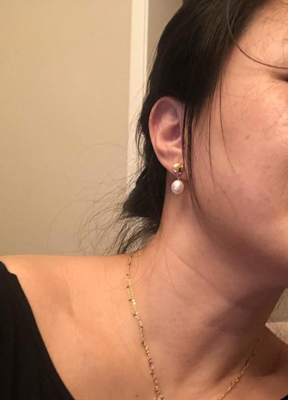 Really pretty everyday pearl earrings. Not too large but still stand out. The gold portion adds a nice pop and makes them more everyday (although would still be lovely with dressier outfits). The pearls have a nice luster. Overall, good quality and great price on sale.