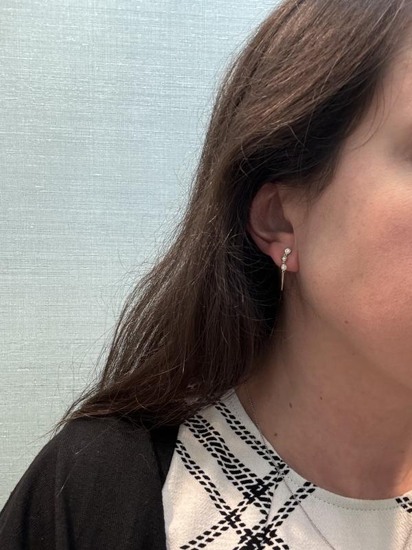 Love these earrings! They are beautiful and delicate, add a nice sparkle to my ear. Slightly smaller than expected but I still love them.