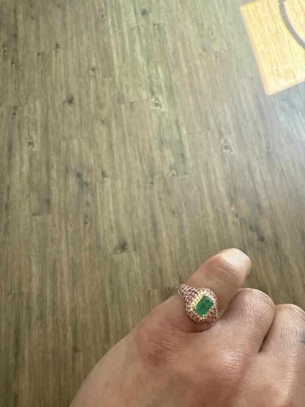 The ring is certainly cute and dainty. I was expecting a bit more vibrancy and overall larger ring/ statement piece. It is certainly not a statement. However, a cute dainty pinky ring at size 3.5. Not a ring to be mixed with estate jewelry.