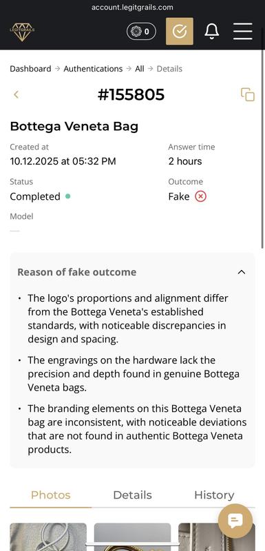 I received this bag. When i opened the box a very strong musty smell filled the air. This bag was thrown into a clear plastic bag, had no tag, no duster, no filler as the bag was flat and did not come in a Bottega box. It had no Gold certification that it was real from Bottega and had a Chinese booklet inside. I immediately called Bloomingdales online to let them know I had received a fake bag and i drove to return it. I went through the other reviews and saw two other people posted they received a fake bag. Unacceptable for Bloomingdales to let this continue. No quality control, no alarms in sending out a $4,700 bag with no box, tags etc… I am a loyalist, Top of the List Unlocked and I have no trust in Bloomingdales. Still waiting for a resolution as returning the bag is not enough