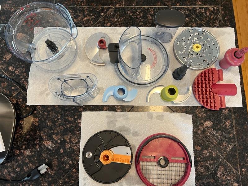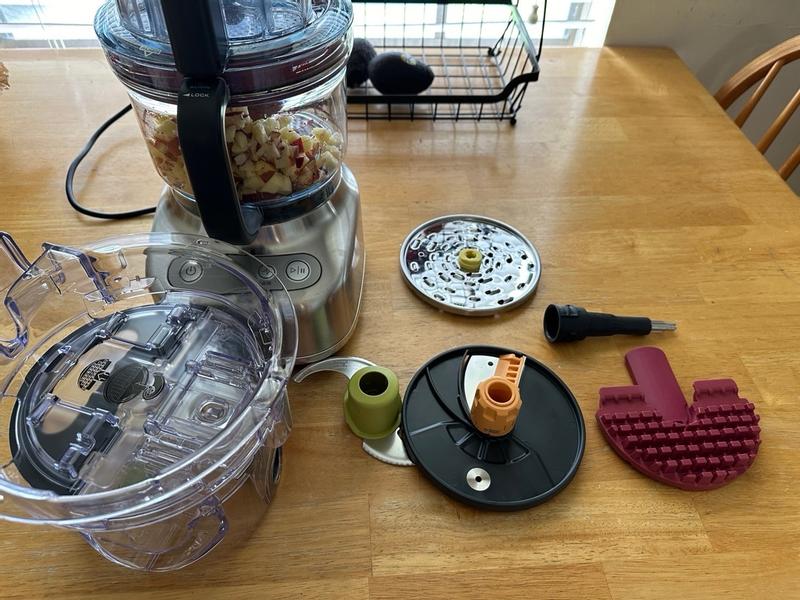 I am so happy with this purchase. It has a powerful motor and does a great job of dough, chopping and shredding. I love the cube slicer. I can cube up carrots, celery, onions for soups, stews, etc in literally seconds. It’s easy to clean and most accessories are dish washer safe. I love that it comes with so many great accessories and a really unique storage unit for them. This is a 9 cup so it’s not too big and I can actually leave it on the counter..it looks so great. I have wasted money on the two food processors that I bought prior to this one and wish I had just purchased this in the first place.