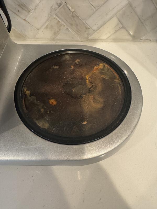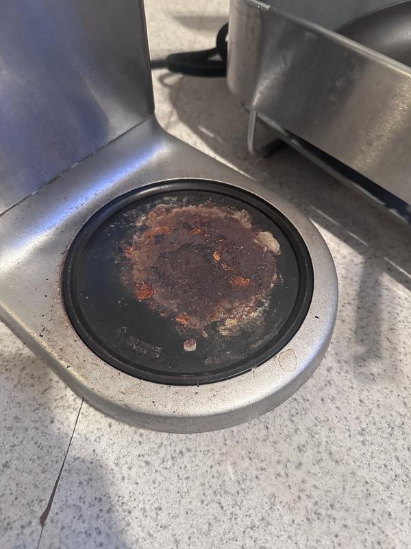 After you remove the carafe coffee drips onto warming plate. This will cause the finish on the warming plate to corrode. Breville's answer to the problem was to wipe the warming plate every time coffee drips. See pictures for expectations on what to expect.