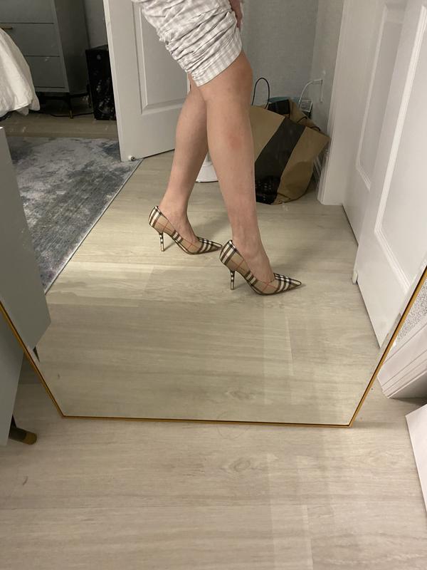 True to size. I’m a 38 and I ordered a 38. I was a little concerned the heel would be too high for me, but it isn’t. It is EXTREMELY comfortable despite the heel height. I love the fact that there is NO TOE CLEAVAGE! All of my high end designer pumps have extreme toe cleavage (except Jimmy Choo). I’m over the toe cleavage. I love EVERYTHING about these shoes❤️❤️❤️. I’m definitely a new Burberry fan