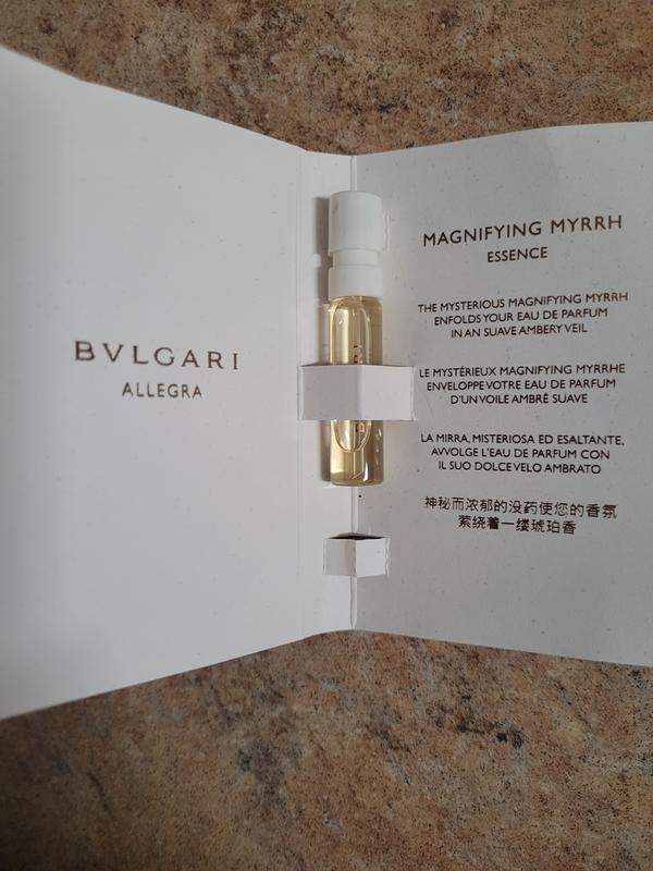 Bulgari - ALLEGRA MAGNIFYING MYRRH is beautiful! This exotic scent lingers on my skin, does not give me a headache- I can barely smell it myself but others have instantly noticed it. It's sexy, it's fruity, its my new favorite!