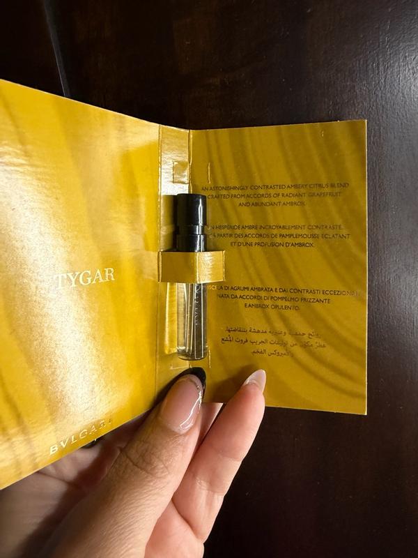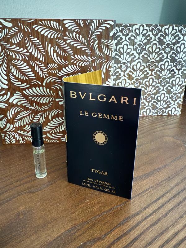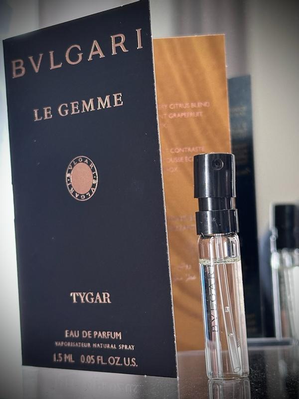 Bulgari Le Gemme Tyga Eau de Parfum exudes luxury in a tiny vial. Fresh, woody, and refined with citrus and amber notes — perfect for testing a sophisticated, masculine scent.
