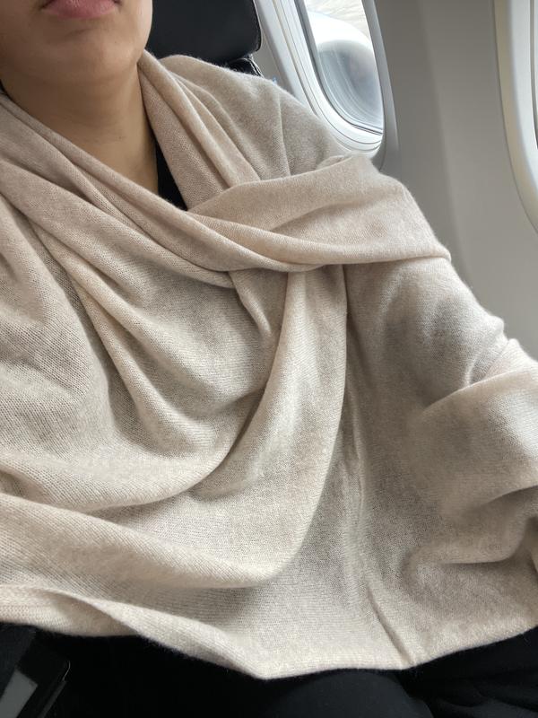 So cozy! It’s like a travel blanket. Great for cold days , throwing over your head when you forgot a hat, traveling, as a blanket on the plane. Super soft, great purchase.
