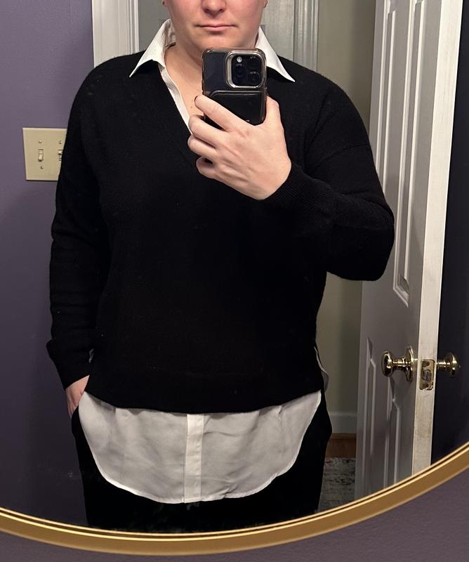 I highly recommend this combination of striped shirt & cashmere sweater.
