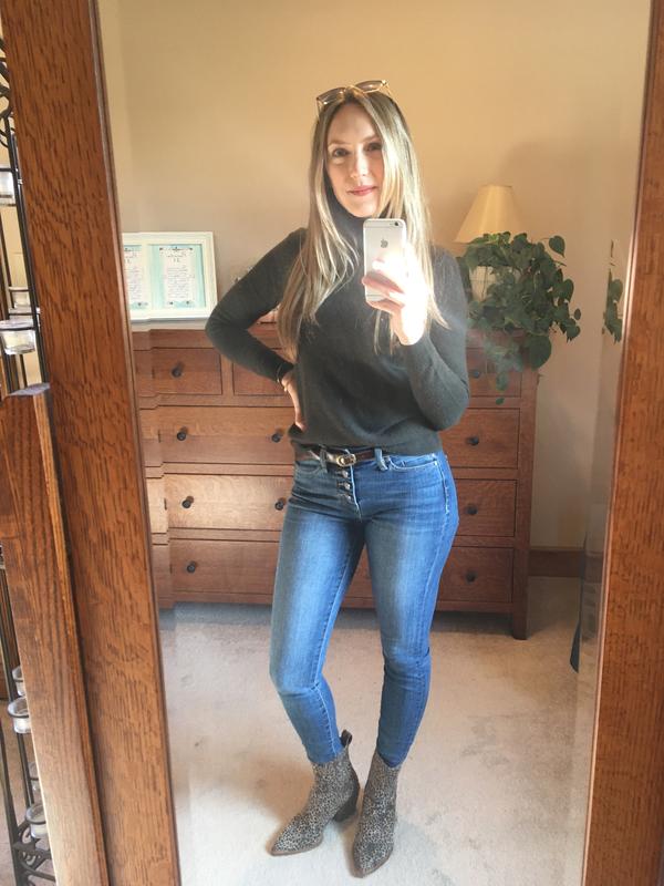 The color was not what I wanted or had seen in the store. I wanted a softer shade of brown. It was also a little snug. The people who helped me were great. I was disappointed in the sweater.