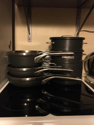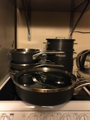 Love the pans and the stacking ability. These pans are somewhat heavy but love how everything turns out. Thank you, Calphalon.
