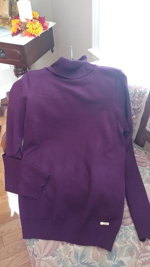 This sweater is soooo pretty. The purple is gorgeous, the fit is perfect and it is so soft and comfortable. I want another one! This sweater is amazing. And the color is to die for. Love my sweater!