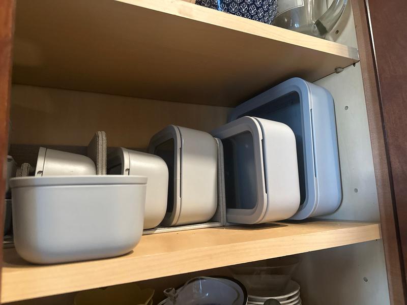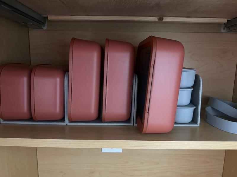 I ordered the large food set that came with the mini storage containers. Everything is near perfect. The reason I gave four out of five stars is because the mini storage containers do not come with any sort of organization and I would love to a pocket on one of the sides or something to integrate the silicone straps.