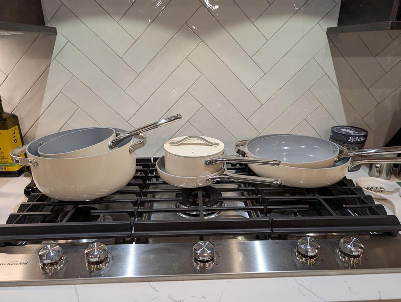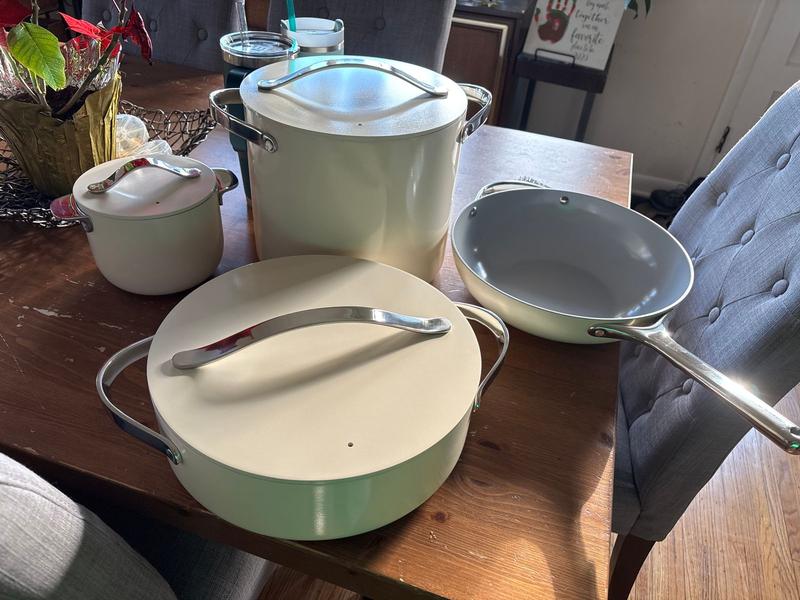 Love the sage green color, but I love this cookware set even more! This set makes cooking fun!
