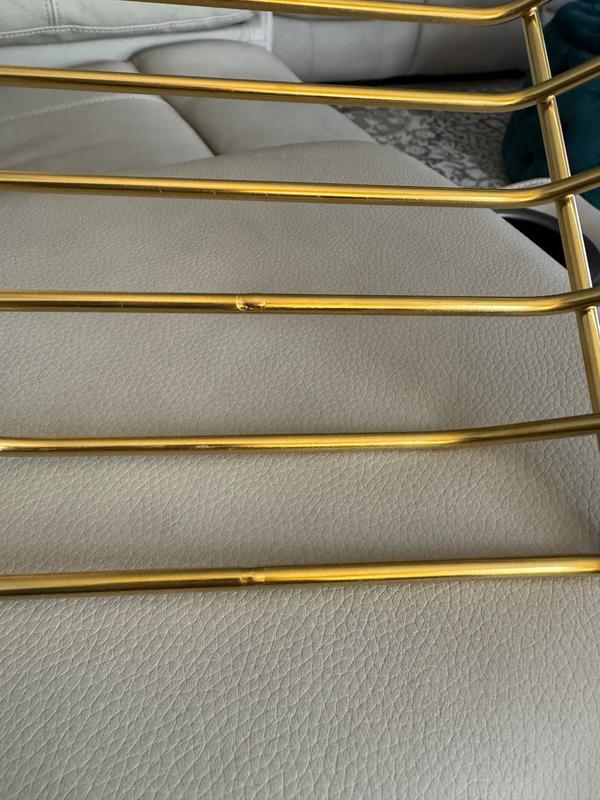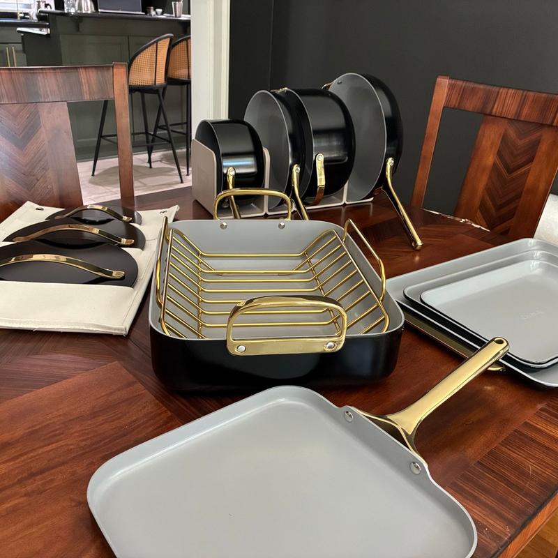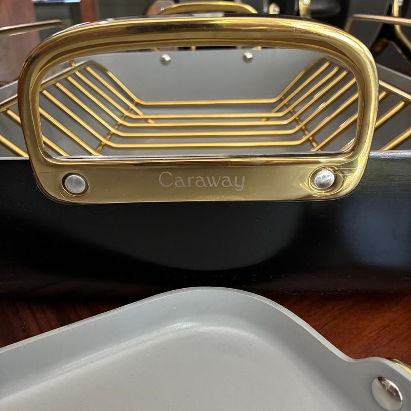 The gold rack to my white roasting pan was made with a imperfection in two places. We pay a lot for these clean quality pieces and even extra for white and gold handled cookware. I love my Caraway cookware but this is the piece flawed in manufacturing.The pan is perfect but rack needs replacement. I am surprised it passed manufacturing inspection. I am going to need a replacement.