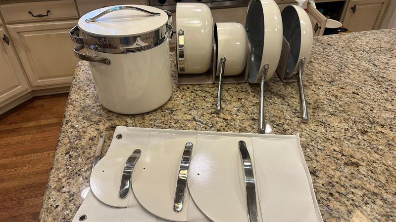 This goes with my xlarge stockpot and stays out with the pot because I use it often and it looks beautiful