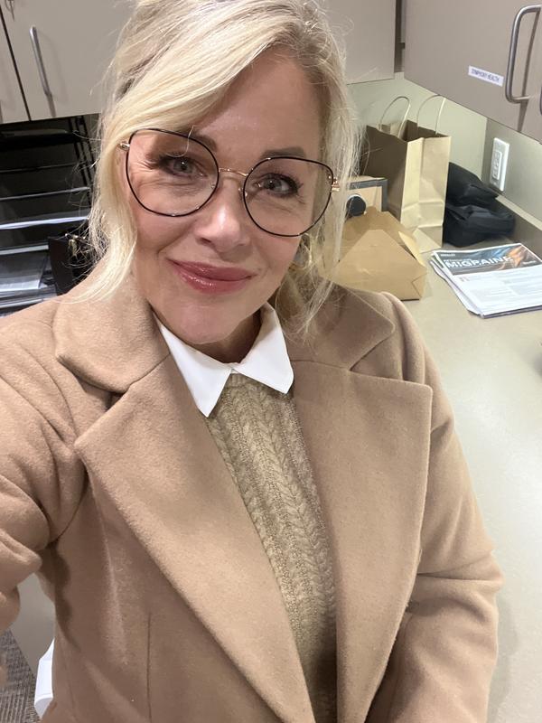 Nice blouse but a bit cold with the sleeves! I thought I could get used to them but I would rather have the full sweater sleeves.