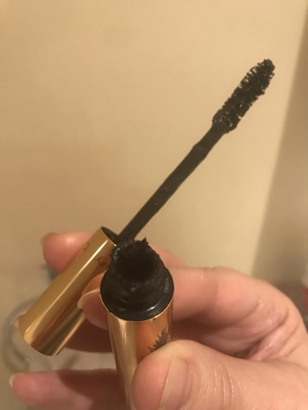 I've just received the mascara and it is not good at all. Very thick on the brush and leaves marks on eye lids. Does not dry properly on lashes. I purchased online so could not check the texture beforehand, which was a mistake. Waste of money. Should have bought hHourglass mascara again instead as a lot better.