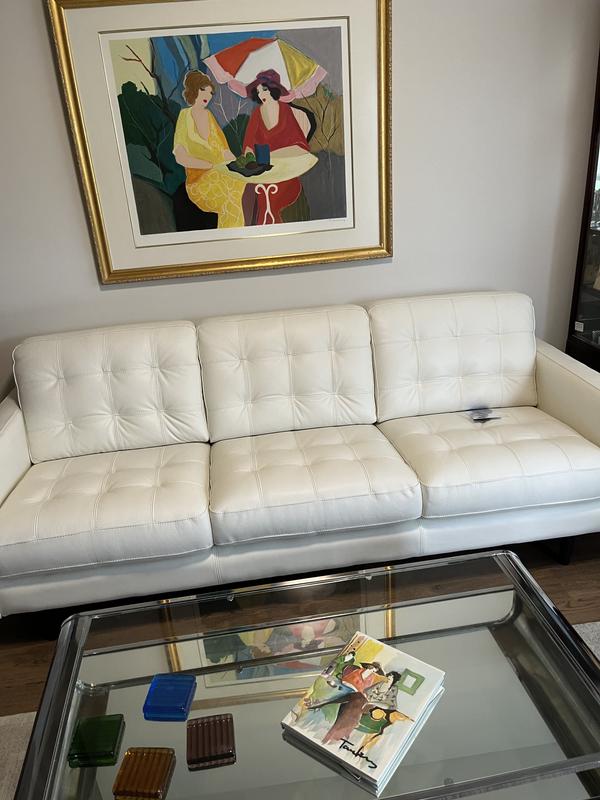 Purchased this couch in December. After numerous mistakes on Bloomingdales' part in scheduling the delivery and hours of me being on hold being moved from one department to another, I finally cancelled this couch. Terrible, Bloomingdale's, you used to be good at customer service. Never buying again.