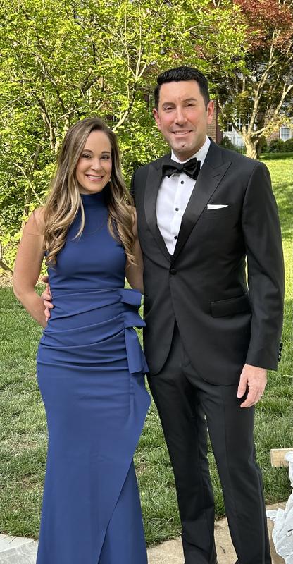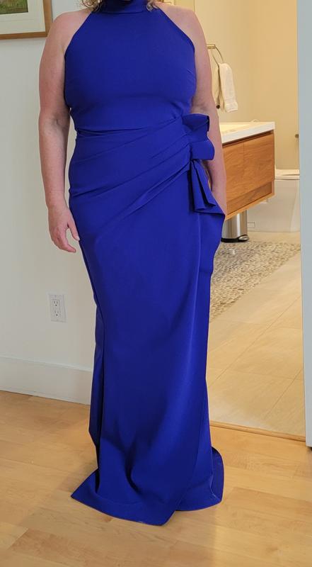 A classic gown that highlights beautifully! Fabric is amazing. It is very long and will probably need hemming.