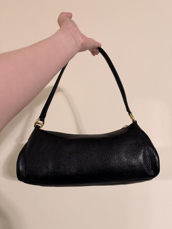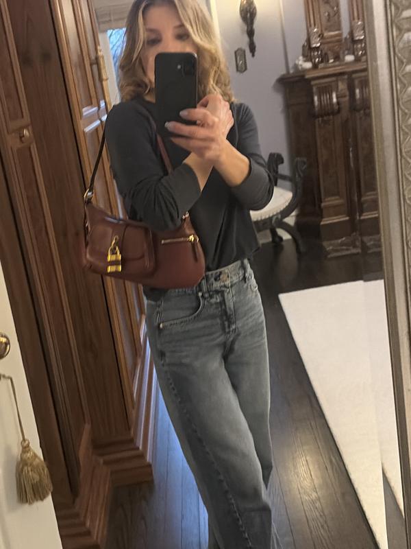 This bag sits so nice in my shoulder. The leather conforms perfectly to your body. The outside pocket is good for lipstick and the side zip pockets can store your ear buds. This bag great!
