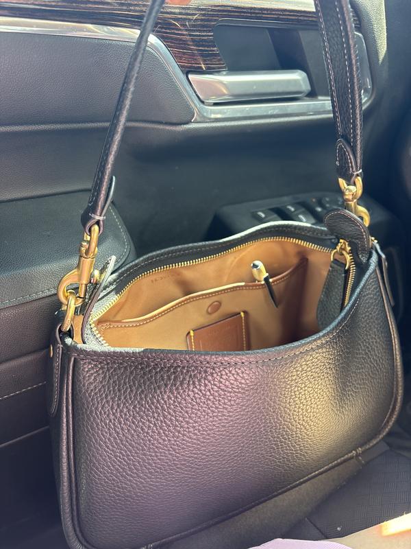 This bag is the perfect size for running around and fits quite a bit in it. The problem is that the strap keeps coming unhooked on one side. I have had my bag drop on the ground several times since owning it, and the contents have spilled everywhere. Very frustrating and embarrassing when this happens. For the cost of this bag, the hooks should be higher quality and stay fastened. I have several Coach bags that I love and, unfortunately, this one fails to meet the high marks I give my other bags because of this issue.