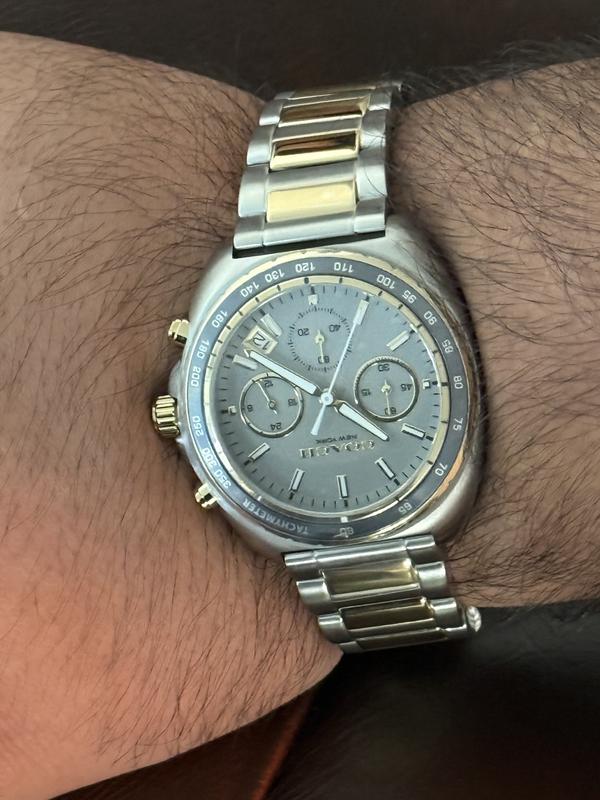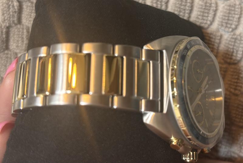 I gave this watch to my son as his graduation gift. He loved the two-tone and the dial. It's very light in weight and can be dressed up or down. He can't wait to wear it to his cousin's wedding and show off to his cousins. I love the smile on his face when he wears the watch and style.