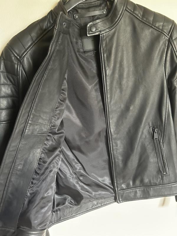 Wore the Cole Haan Racer Jacket on a night out and was genuinely impressed. The lamb leather is incredibly soft—feels high-quality right off the bat. The design is clean and minimal, which I really like. It doesn’t try too hard, but still makes a statement. The fit is just right: snug in the shoulders, with enough room to move around comfortably.