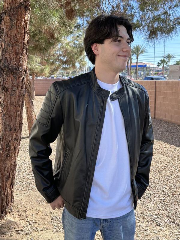 The Cole Haan Men’s Leather Racer Jacket in black is a solid pick. It looks great, feels super comfortable, and the leather is soft but still holds up well. The fit’s just right—not too tight, not too loose—and it’s easy to wear day to day. Overall, a really good jacket if you’re after something simple, stylish, and comfy. There are zip pockets on the front and also a pocket on the inside.