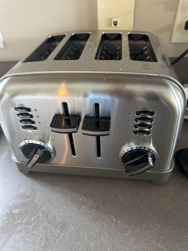 The Cuisinart Toaster has an excellent price point among competing brands. Cuisinart is a name you can trust. This is my second four-slot Cuisinart toaster. I noted some differences which makes this experience different. The toaster lever must be softly lowered and held in the on position. Moving it down quickly will not engage the toaster. The lever will return to the up position. This creates a learning curve for the user. In all other respects it operates well with the same functionality including a selection for bagels and defrost.