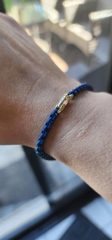 This is a beautiful, sturdy bracelet. I'm actually wearing it to work today. I now have 3 colors on this bracelet and absolutely love the pop of color it brings to my arm and outfits. Beautiful midnight blue color. David Yurman typically runs small, so I ordered a Large because I don't like bracelets tight. It fits great!