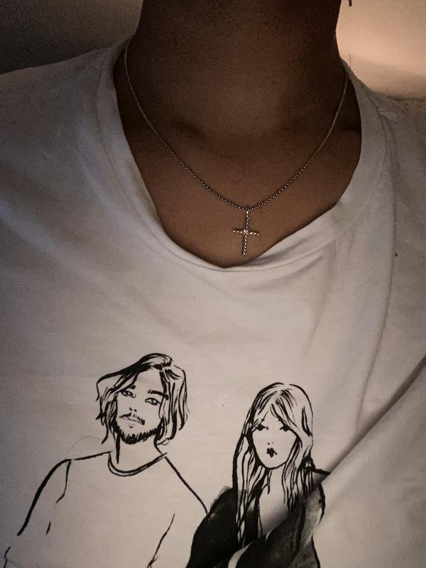I’ve been eyeing this silver cross for awhile with gold in the middle. But saw this one with the diamond instead and prefer it. It’s much more elegant. Very versatile. Looks great dressed up or down. Very happy with my purchase.