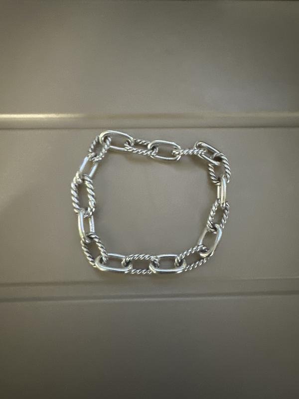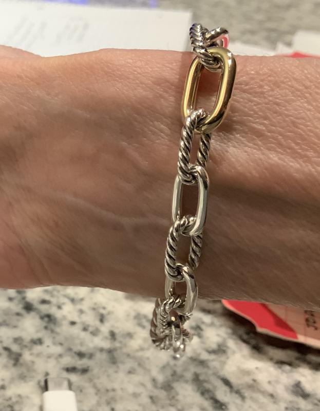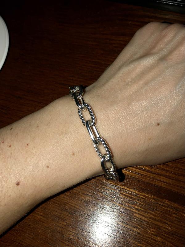Love this bracelet. I was looking for something a bit "bulkier" to stack with (2) other slimmer bracelets to wear every day. It's perfect and the links really make my other bracelets pop.