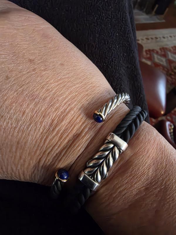 Although, I purchased David Yurman Men's Sterling Silver Chevron Rubber Bracelet for my fiance, I wear it too. :) It is the epitome of understated luxury and craftsmanship. The sleek modern design pairs seamlessly with both casual and formal outfits. It’s a piece that draws attention without being overpowering. If you're building your accessory collection, this timeless investment is an absolute must-buy. I love it!