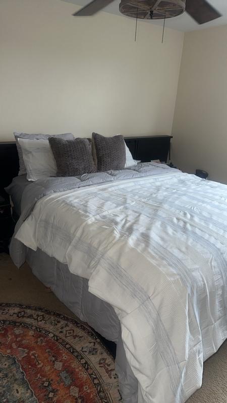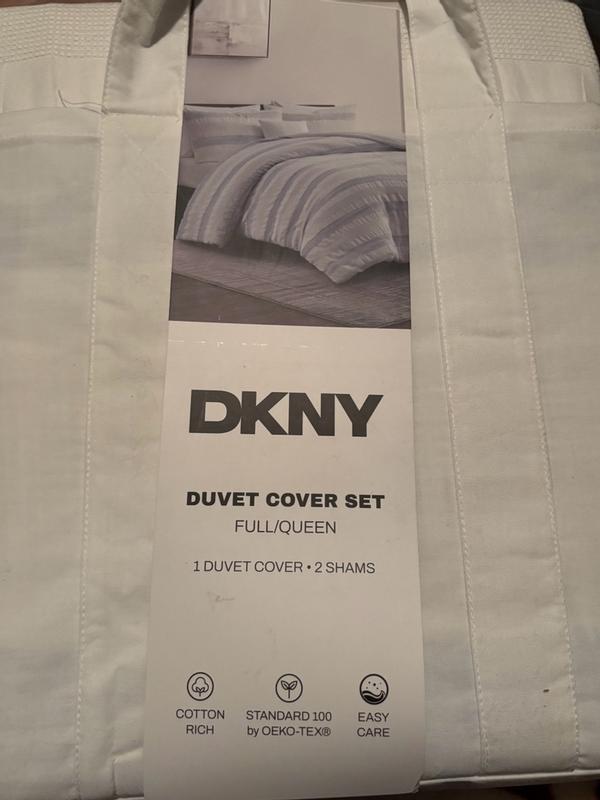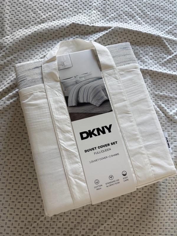 This set from DKNY waffle stripe Jacquard Duvet Set in Queen size is so cute and comfortable. It is very pretty with the soft lines and the way it fits on the bed it great.