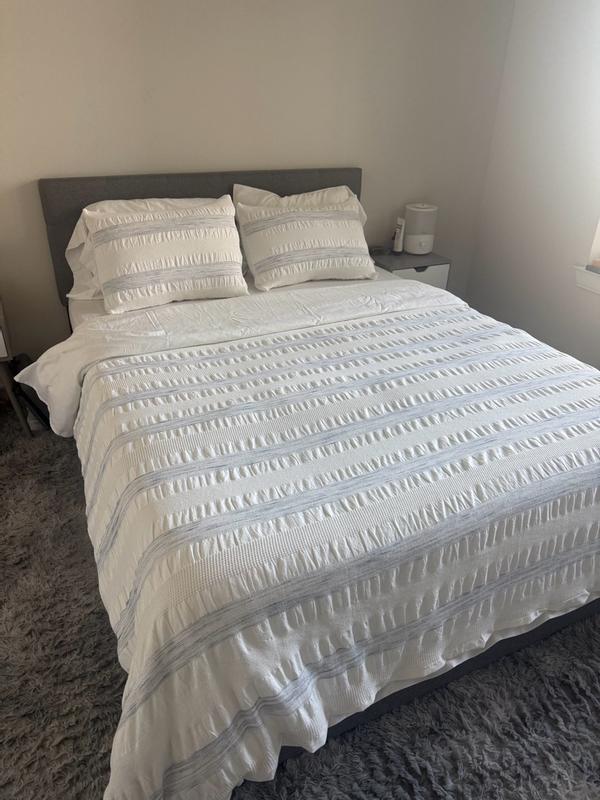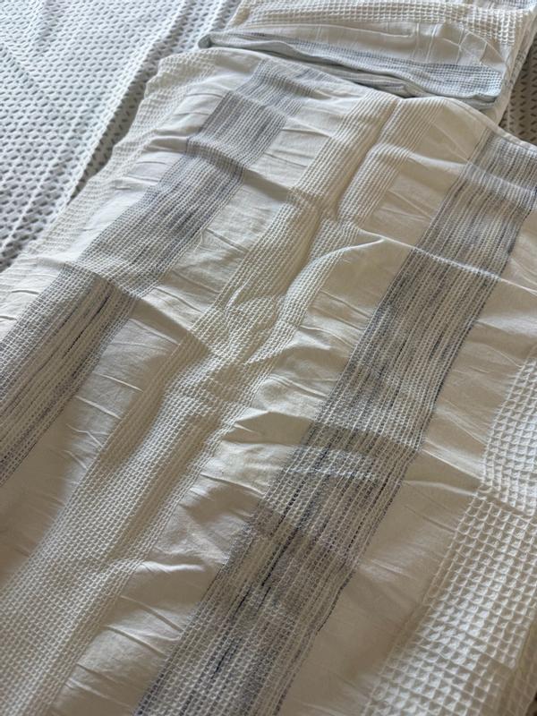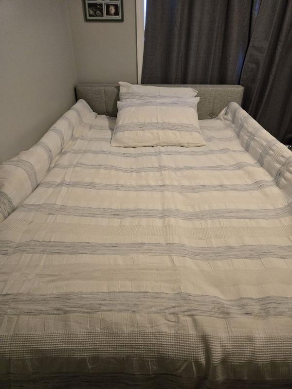 I absolutely love how this duvet set makes my bed look—it’s chic, textured, and adds that perfect layered style. The waffle jacquard design gives it a real high-end feel. That said, as a queen size it feels a bit too small. If you like your duvet to drape over the sides and fall down nicely, this one won’t give you much slack. You might want to size up for that fuller coverage. It’s soft, comfortable, and looks great but just know that the fit doesn’t offer much overhang.