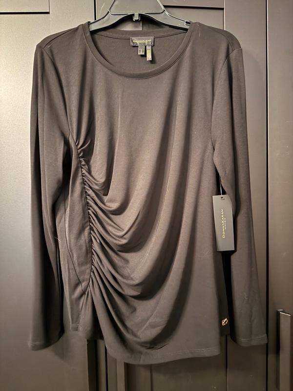 Donna Karan Long Sleeve Ruched-Side Top