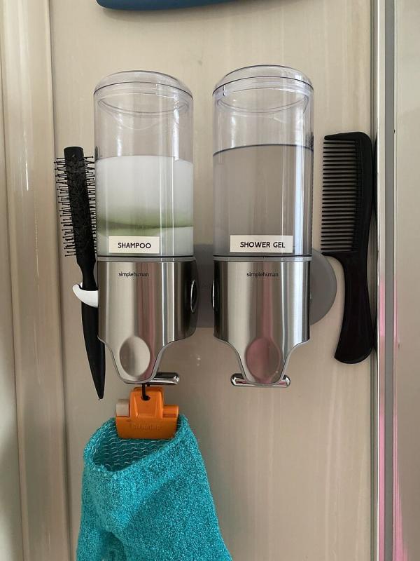 This is so much easier than baskets and hanging things and clutter in the shower. They fixed the wall dispense what you want and they are not in your way.