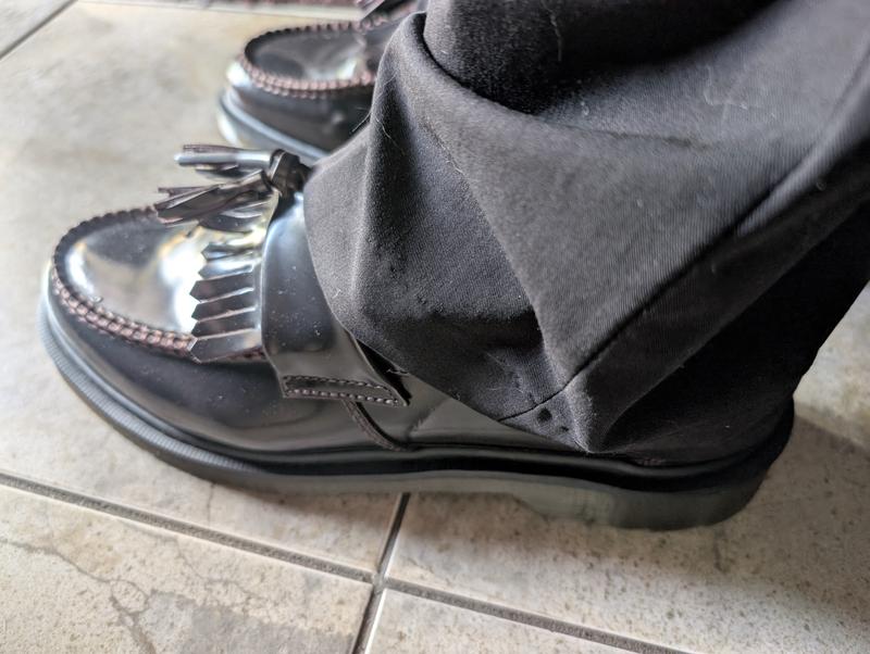 Just had these shipped to me and they look great! Patent leather is softer than I was expecting. As usual with Dr. Martens, the sole is comfortable and has good support. The stacked heel and extra material with the tassles make for a bulkier look, but again, that's per usual with Dr. Martens. Leather squeaks a little, but I'm expecting that to minimize with wear. These were on my doorstep within 3 days of ordering. 100% satisfied.