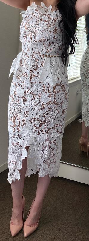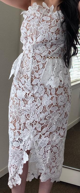 The lace was a bit floppy around the chest area compared to the model image. It felt stiff instead of stretchy. It was difficult to put on, and the zipper was tough to close.