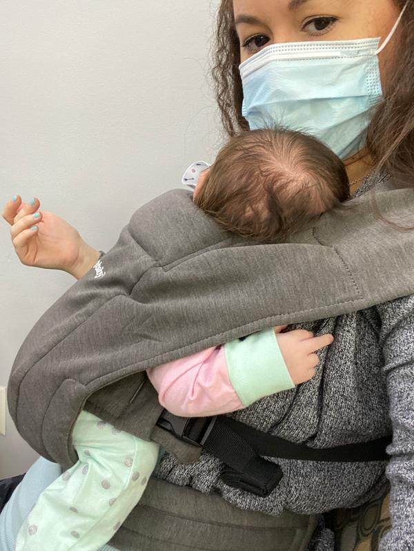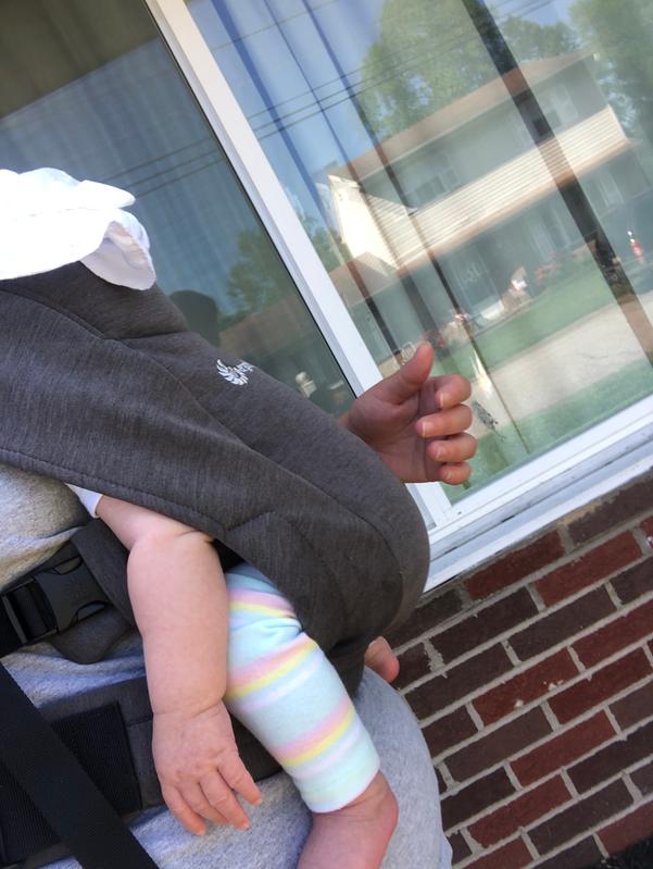 We love this carrier! So soft and comfy for my baby and so easy to take on and off. It’s our go to carrier for around the house!