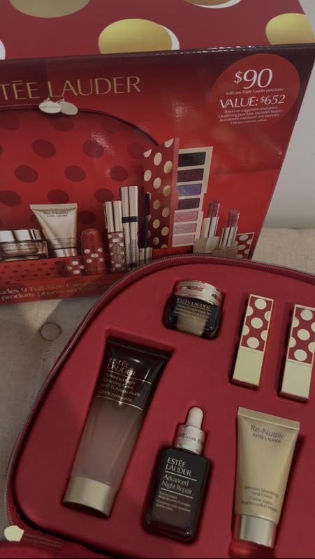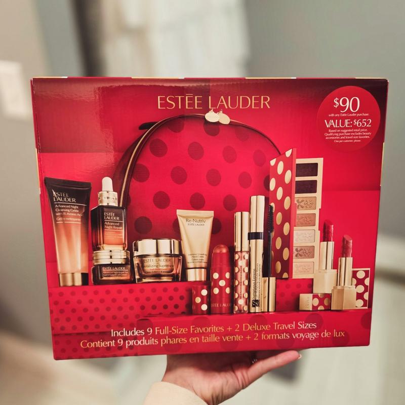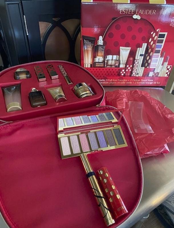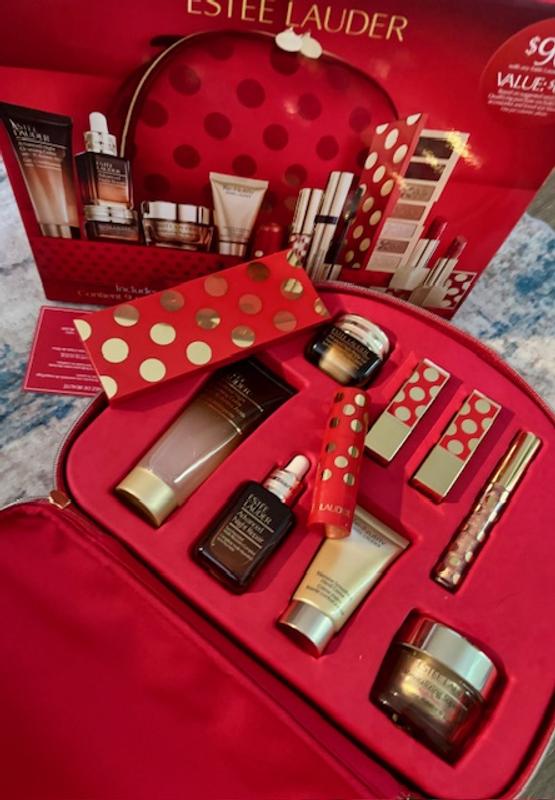 I received the glow set. For skincare, the cleanser is excellent and leaves my skin feeling soft, not stripped. The serum and eye cream help keep my dry skin comfortable, and my fine lines appear less noticeable. The supreme cream is very rich, delivering deep hydration and a firmer feel. I love the night serum; it absorbs quickly, so my skin feels smooth before I apply the night cream. In the morning, my skin feels supple and refreshed. For makeup, the lipsticks and shimmery gloss provide rich color and shine. The eyeshadow palette features warm-toned colors that blend easily—perfect for fall and holidays. The mascara creates visibly fuller lashes. The blush stick has a rosy, bronzy shade and adds a dewy glow. The hand cream is rich and leaves my hands moisturized for hours. The polka dot packaging is beautiful. Overall, this is a lovely kit. I received this product for free from Estee Lauder for testing and review purposes.