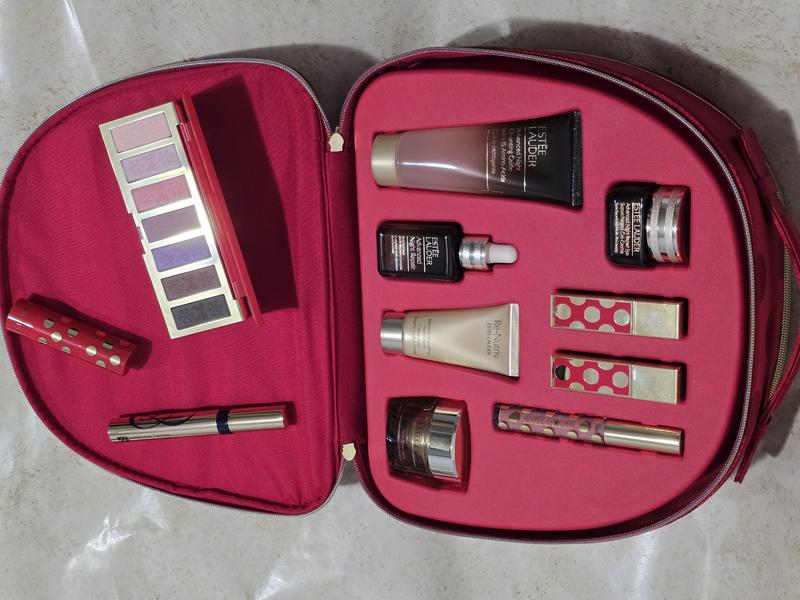 This set is an incredible value. Full-size serum, face cream, eye cream mascara, eyeshadow palette, lipsticks, lip gloss, blush stick...plus hand cream and face wash, all in a luxurious zippered case. I love the serum, a little goes a long way too. The eye cream is so rich and nourishing. The face cream leaves skin feeling plumped and moist. Absolutely love the mascara and lip gloss.The eyeshadow palette is high quality, great shades. I've never been a fan of the lipstick colors they put in these sets. Why not one dark and one light? Or better yet, choose your shades. I don't wear dark lipsticks, especially not reds.However, the set is still such an amazing value!! Perfect to pamper yourself or give as a luxurious gift. I received this product for free from Estee Lauder for testing and review purposes.