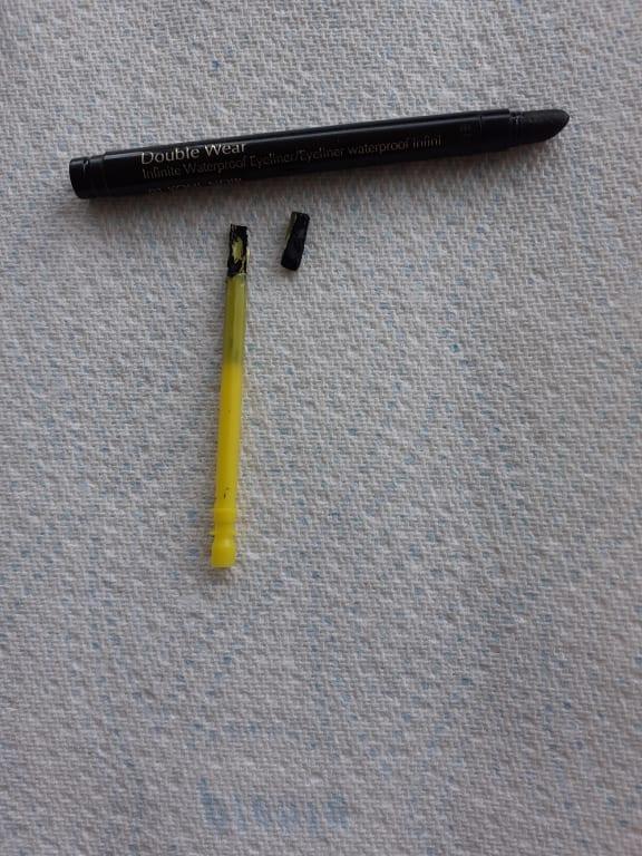 "Double Wear" used to have more purple shade in the plum eyeliner - this is more on the purple/brown side, but still very pretty and doesn't come off on the top lid.