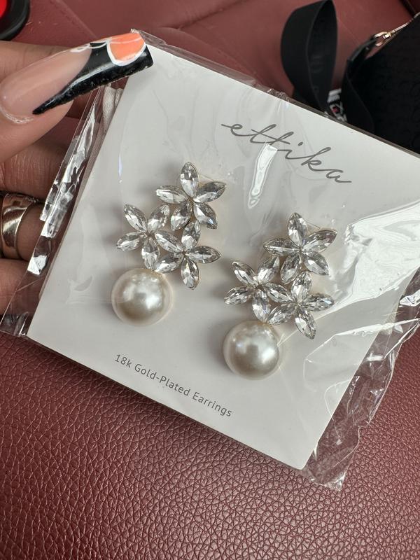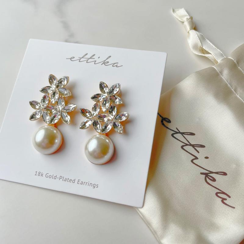 Best Day Floral Faux Pearl Earrings in 18K Gold Plate