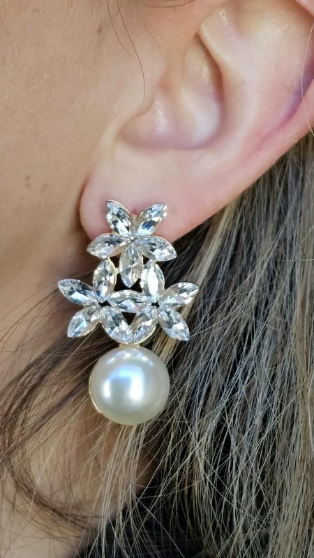 beautiful pearl and crystal earrings. perfect for your wedding day or for an event. lightweight and easy to wear.