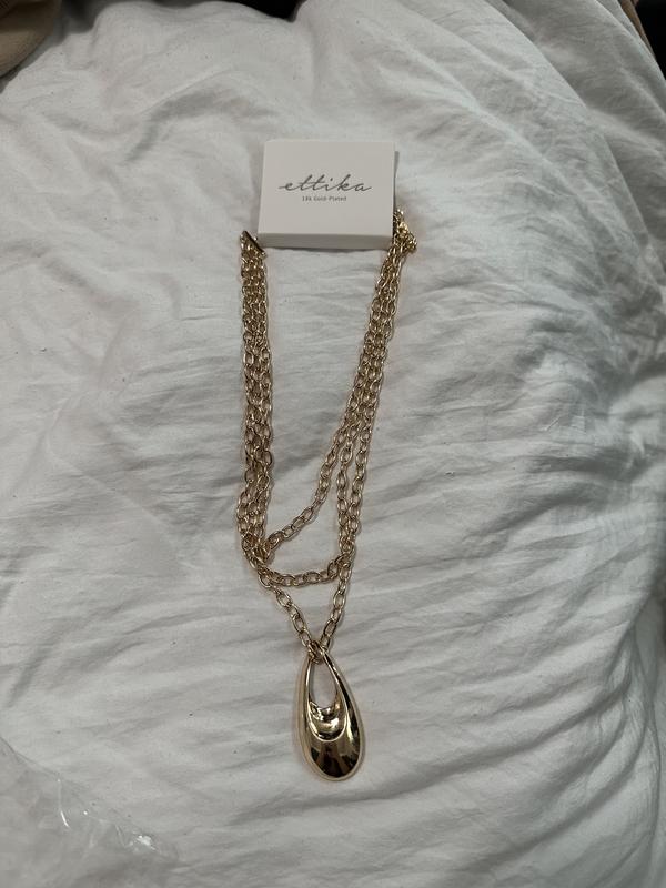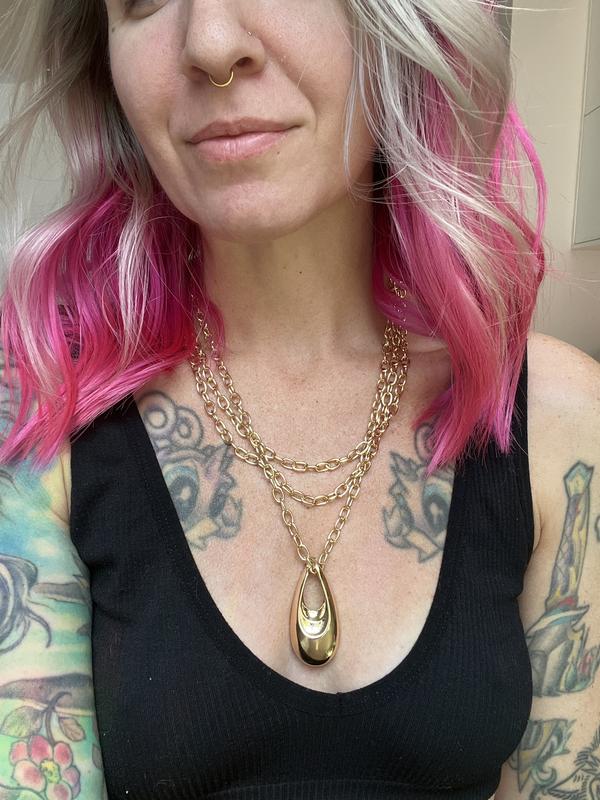 I love this necklace! This piece is so cute and unique compared to my other jewelry. I love the layering and the large pendent. It's lightweight and comfortable to wear. Definitely recommend!