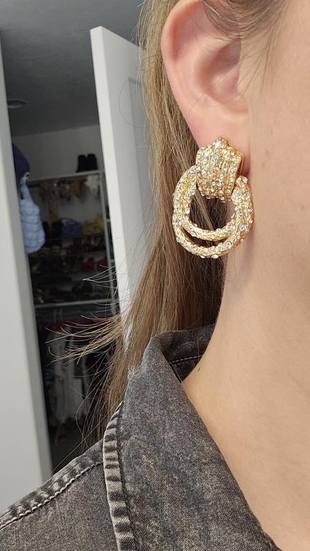 I love these earrings. They are the perfect amount of glamour and not too much. The only thing is they are a little heavy.