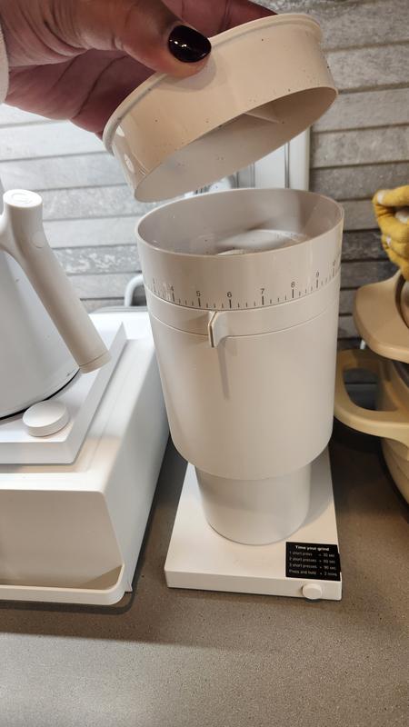 This grinder is the Rolls Royce of grinders. I bought it in white. It matches my decor perfectly. It isn't too loud. I put it on 5.5 to grind my beans for my V60. My coffee tastes sooooo good. The consistency of the grind is apparent in the taste. LOVE IT!