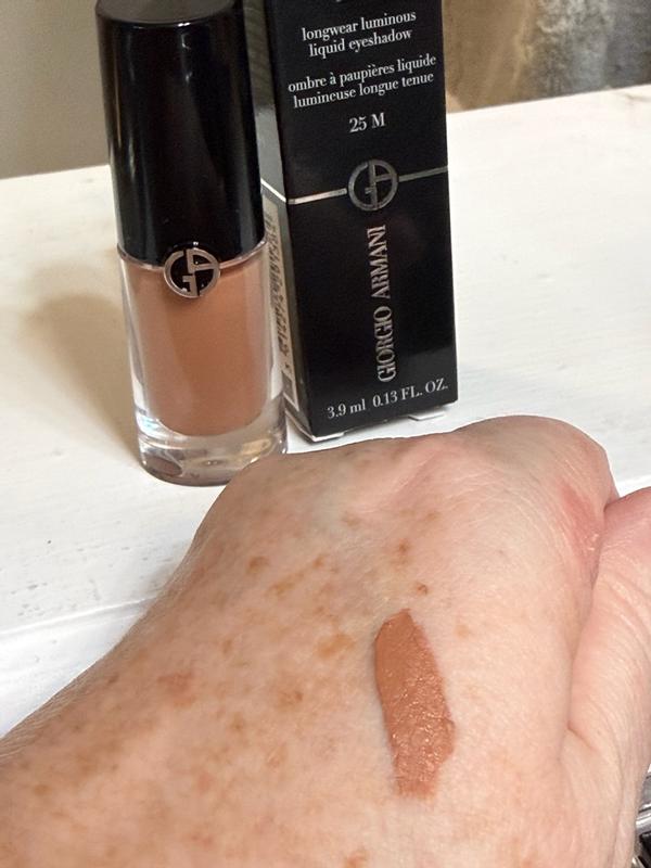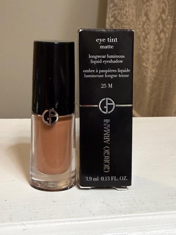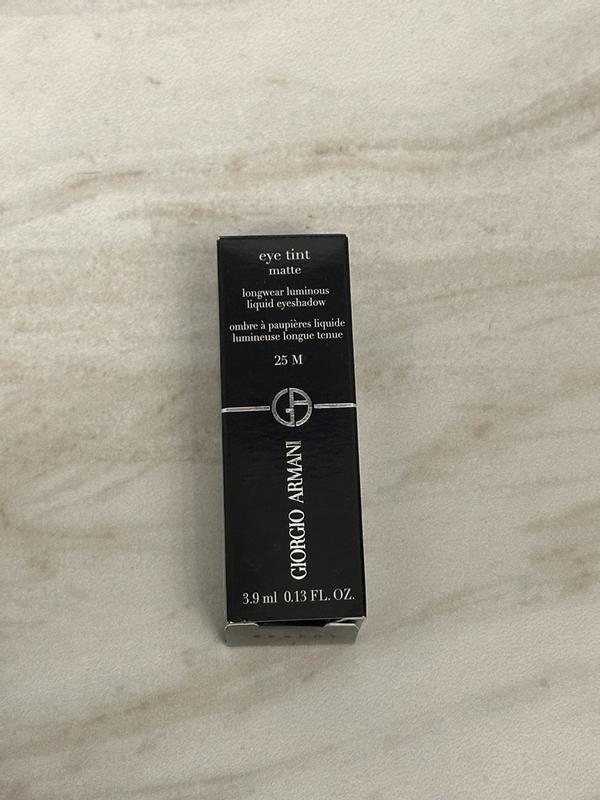 I received a 3.9ml (.13 fl.oz.) bottle of Giorgio Armani 25M eye tint liquid eyeshadow . Consider this your go-to eyeshadow for date night or dinner with the ladies. It comes with a built-in mini brush that softly applies the dark brown matte color and lets you add perfect amount for a seamless contour around the cheek and eye. You won’t need a lot to go a long way so this should last a while.
