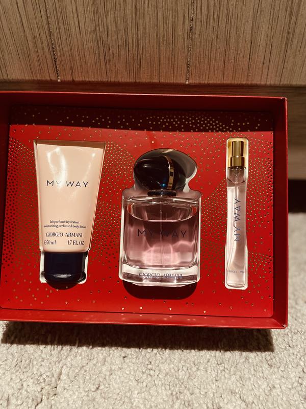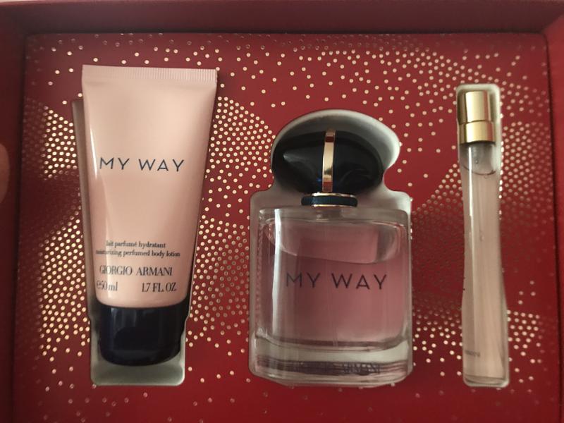 My way perfume smells absolutely delicious I love the flower sent mixed with orange blossom it’s a strong perfume that lasts the whole day. The lotion is soft and creamy. Will purchase again and I recommend to anyone who’s looking for a special gift to offer!!